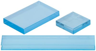 Acrylblock, auf diese Würfel werden die Silikonstempel gelegt, Farbe: transparent, Inhalt: 3 Stück in den Größen 14,5 x 3 cm, 8 x 5 cm und 4 x 4 cm.