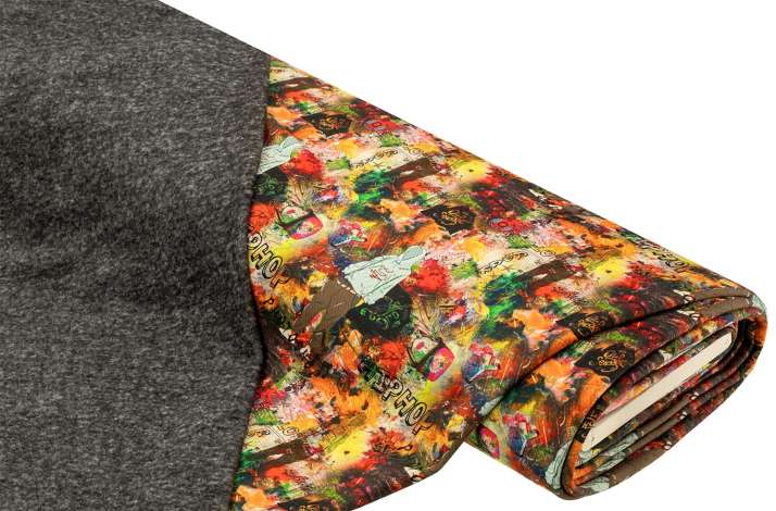 Eine Seite Fleece, die andere Sweat: das ist die ultimative Kuschel-Kombination, die Alpenfleece so einzigartig macht! Egal, ob Hoodie, Jacke, Pulli oder Jogginghose – aus Alpenfleece entstehen mollig warme Wohlfühlteile, die Sie so schnell nicht wieder ausziehen möchten! Das coole Graffiti-Design lässt die Herzen von großen und kleinen Street-Style-Fans höherschlagen und macht selbst aus einem schlichten Pulli ein absolutes Wow-Teil! Da beide Gewebeseiten in typischer Doubleface-Manier als rechte Seite verwendet werden können, eignet sich Alpenfleece auch prima als Stoff für Wendejacken oder -shirts. Gleich bestellen und begeistern lassen!