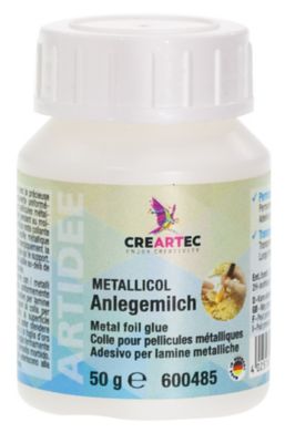 Anlegemilch für Blattmetall, zum leichten Auftragen von Blattmetall, Inhalt: 50 g.