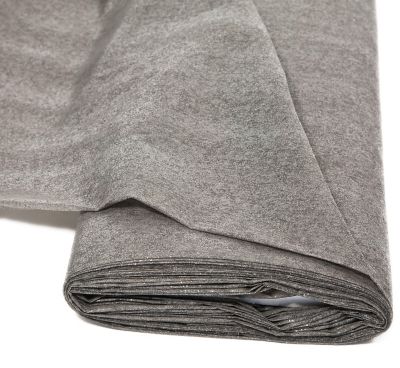 Aufbügel-Vlies, Farbe: anthrazit, einseitig aufbügelbar, Stärke: 0,5 mm, Breite: 90 cm, Gewicht: ca. 52 g/m². Material: 55 % Viskose, 45 % Polyester.