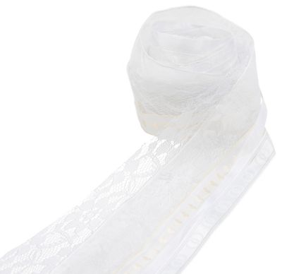 Bänderpaket "Hochzeit", Farbe: weiß, Breite: 15–40 mm, Bänder: 1x Tüllband, 1x Spitzenband, 1x Chiffonband, 2x Satinband, Inhalt: 5x 2 m = 10 Meter. Material: 100 % Polyester.