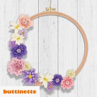 Bastelanleitung "Papierblumenkranz", exklusiv von buttinette, Schritt-für-Schritt-Anleitung mit Vorlagebogen in Originalgröße, zum Basteln von verschiedenen Blumen in unterschiedlichen Größen..
