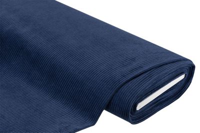 Baumwoll-Breitcord, Farbe: dunkelblau, Rippen längs verlaufend, Rippenbreite: 5 mm, Breite: 140 cm, Gewicht: ca. 280 g/m². Material: 100 % Baumwolle.