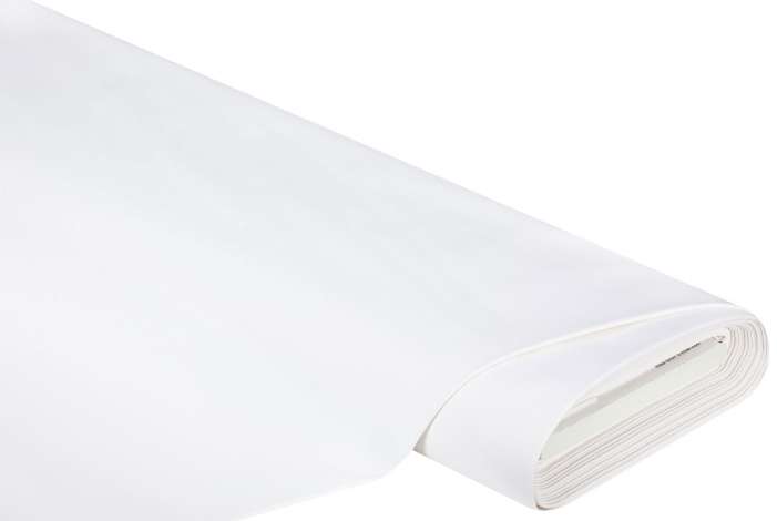 Fester Canvas aus reiner Baumwolle, Farbe: weiß, durchgefärbt, Breite: 145 cm, Gewicht: ca. 240 g/m². Einlaufwert: 4 % in Länge und Breite. Material: 100 % Baumwolle.