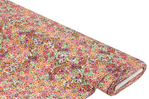 Sie wünschen sich etwas mehr Farbe in Ihrem Kleiderschrank? Wir hätten da was für Sie: Dieser traumhafte Elastikjersey voller bunter Blümchen in Wasserfarbenoptik vereint mühelos verspielte Farbenpracht mit klassischer Eleganz. Ohne viel Aufwand nähen Sie aus diesem schönen Baumwollstoff atemberaubende und Figur umschmeichelnde Shirts, Kleider, Leggings, Schals oder Mützen, die dank Elasthananteil auch noch superbequem sind. Aber auch Kissen- und Bettbezüge sind aus dem Baumwoll-Jersey im Nu genäht. Bestellen Sie gleich heute und freuen Sie sich auf Ihr blumiges Nähprojekt!