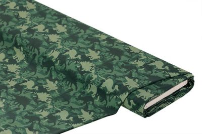 Baumwoll-Jersey-Digitaldruck „Dinos“ mit Elasthan, Farbe: grün-color, bi-elastisch, Motivgröße Dino fliegend: 6 x 3 cm, Breite: 155 cm, Gewicht: ca. 230 g/m². Material: 94 % Baumwolle, 6 % Elasthan