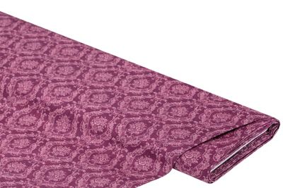 Baumwoll-Trachtenstoff "Blumenornamtente" Digitaldruck, Farbe: brombeer, Motivgröße Ornament: 8 x 6,5 cm, Breite: 145 cm, Gewicht: ca. 155 g/m². Material: 100 % Baumwolle.