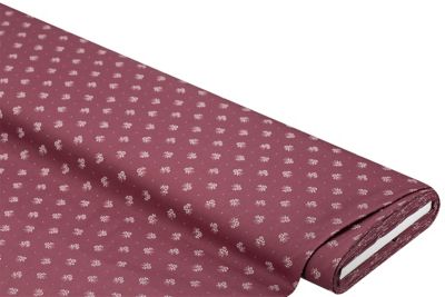 Baumwoll-Trachtenstoff "Röschen", Farbe: aubergine/weiß, Motivgröße Rose: 1,5 x 1 cm, Breite: 145 cm, Gewicht: ca. 140 g/m². Material: 100 % Baumwolle.