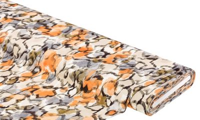 Baumwoll-Twill "Blumen", Farbe: braun-grau, Breite: 145 cm, Gewicht: ca. 310 g/m². Material: 100 % Baumwolle.