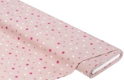 Baumwolljersey "Sterne", Farbe: altrosa-color, leicht bi-elastisch, Motivgröße Sterne: ca. 1–1,5 cm Ø, Breite: 160 cm, Gewicht: ca. 160 g/m². Einlaufwert: 3–5 % in Länge und Breite. Material: 100 % Baumwolle.