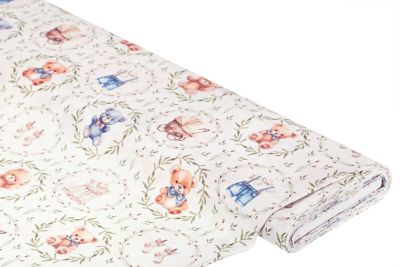 Mit diesem schönen Dekostoff bringen Sie einen wundervoll ruhigen, ja sogar ein wenig nostalgischen Charme ins Babyzimmer. Die niedlichen Motive wie Bärchen, Stubenwagen und Baby-Outfit begeistern Groß und Klein! Nähen Sie aus dem Dekostoff Regalvorhänge, Tischläufer, Kissenbezüge oder Bettwäsche; auch praktische Utensilos, Windel-Taschen und Täschchen aller Art werden so zu niedlichen, individuellen Hinguckern. Die Baumwolle ist zudem herrlich weich und leicht zu verarbeiten. Am besten gleich jetzt bestellen und schon bald losnähen!
