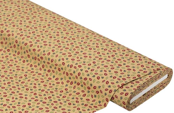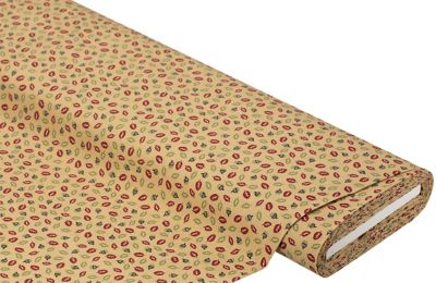 Exklusiv von buttinette: Baumwollstoff "Blätter & Eicheln" aus der Quiltserie "Mona", Farbe: sand-color, aus besonders feiner, weicher und hochveredelter Baumwolle, Motivgröße Blätter: 2,2–2,4 cm, Breite: 150 cm, Gewicht: ca. 130 g/m². Material: 100 % Baumwolle.