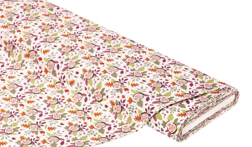 Baumwollstoff-Digitaldruck Igel Herbst "Dana", weiß-color