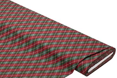 Exklusiv von buttinette: Baumwollstoff "Karo/Raute", Farbe: rot/grün, aus der Quiltserie "Sina", aus besonders feiner, weicher und hochveredelter Baumwolle (Renforcé), Motivgröße weiße Raute: 1,8 x 1,8 cm, Breite: 150 cm, Gewicht: ca. 130 g/m². Material: 100 % Baumwolle.