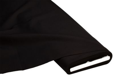 Baumwollstoff "Lisa", Farbe: schwarz, durchgefärbt, Breite: 150 cm, Gewicht: ca. 140 g/m². Einlaufwerte: ca. 3–5 % in Länge und Breite. Material: 100 % Baumwolle.