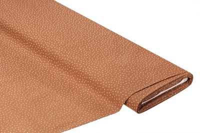 Exklusiv von buttinette: Baumwollstoff "Punkte", Farbe: braun/weiß, aus der Quiltserie "Lena", aus besonders feiner, weicher und hochveredelter Baumwolle (Renforcé), Motivgröße Punkt 1 mm Ø, Breite: 150 cm, Gewicht: ca. 130 g/m². Material: 100 % Baumwolle.