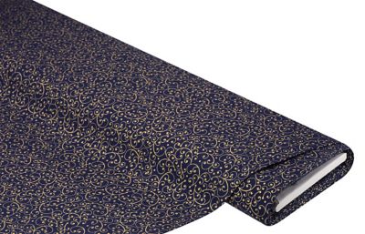 Exklusiv von buttinette: Baumwollstoff "Ranke", Farbe: dunkelblau/gold, mit goldenem Glitzerdruck, aus der Quiltserie "Mona", aus besonders feiner, weicher und hochveredelter Baumwolle (Renforcé), Breite: 150 cm, Gewicht: ca. 130 g/m². Material: 100 % Baumwolle.