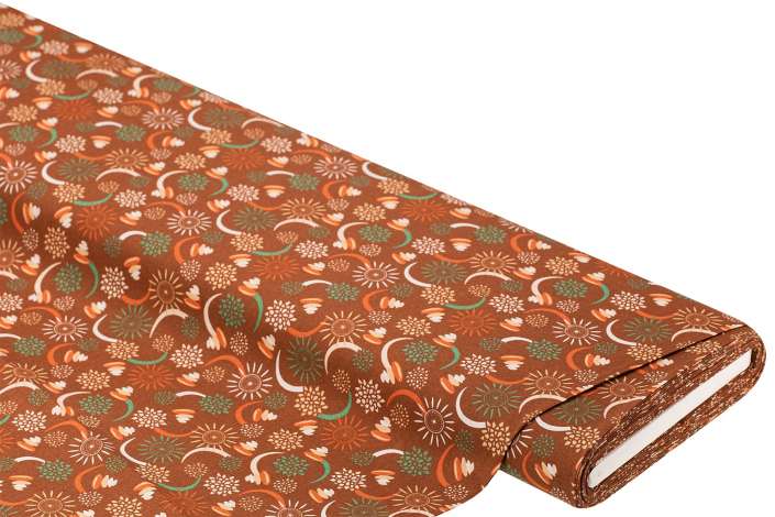 Exklusiv von buttinette: Baumwollstoff "Relax", Farbe: braun-color, aus der Quiltserie Mona, aus besonders feiner, weicher und hochveredelter Baumwolle, Motivgröße Steinpyramide: 1,5 x 1,5 cm, Breite: 150 cm, Gewicht: ca. 130 g/m². Material: 100 % Baumwolle.