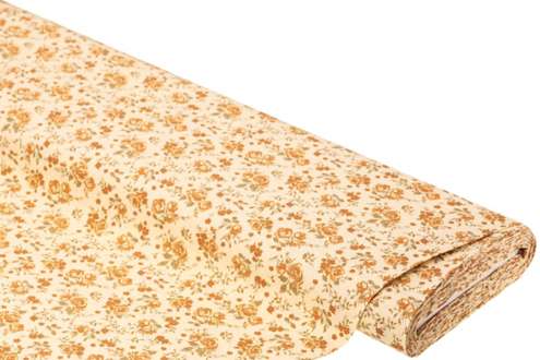 Exklusiv von buttinette: Baumwollstoff "Rosenbouquet", Farbe: gelb-color, aus der Quiltserie "Mona", aus besonders feiner, weicher und hochveredelter Baumwolle (Renforcé), Motivgröße 3 Rosen: 3 x 3 cm, Breite: 150 cm, Gewicht: ca. 130 g/m². Material: 100 % Baumwolle.
