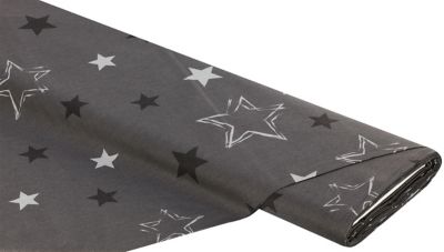 Moderner Baumwollstoff Stern „Stella“ für coole Deko und jugendliche Näh-Ideen wie z.B. Taschen, Utensilos, Sitzkissen, allerlei Wohnraum-Accessoires uvm., Größe: 4 – 11 cm, Farbe: graphit, Breite: 160 cm, Gewicht: ca. 140 g/m². Material: 100 % Baumwolle.
