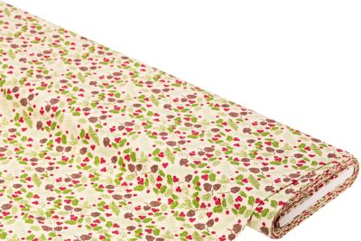 Exklusiv von buttinette: Baumwollstoff "Zapfen & Beeren", Farbe: natur-color, aus der Quiltserie "Mona", aus besonders feiner, weicher und hochveredelter Baumwolle (Renforcé), Motivgröße Zapfen: 1–1,5 cm, Breite: 150 cm, Gewicht: ca. 130 g/m². Material: 100 % Baumwolle.