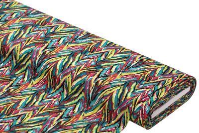 Blusenstoff "Zacken", Farbe: bunt, Breite: 140 cm, Gewicht: ca. 155 g/m². Material: 97 % Viskose, 3 % Elasthan.