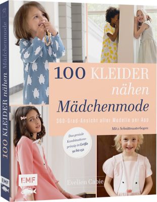 "100 Kleider nähen Mädchenmode". Buch für Mädchenkleider in den Größen 92-152. Aus den enthaltenen Schnittmustern lassen sich bis zu 100 verschiedene Kleidervarianten kombinieren, idealerweise eigenen sich dafür gewebte Stoffe oder festere Jerseystoffe. Dank ausführlichem Grundlagenteil, Schnittmusterbogen und 360-Grad-Ansicht via App lassen sich die Kleider leicht nacharbeiten. Buch mit 142 Seiten. Größe: 20,5 x 25,5 cm.