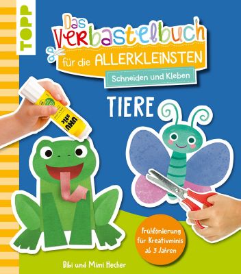 "Das Verbastelbuch für die Allerkleinsten - Tiere". Mit diesem tollen Mitmachbuch lernen Kinder ab 3 Jahren spielend leicht die ersten einfachen Formen mit der Schere aus Papier auszuschneiden und sie aufzukleben. Im Buch sind alle Papiermaterialien enthalten, um die zwölf tierischen Bastelideen nachzuarbeiten. Das ist Bastelspaß mit Frosch, Katze, Bär & Co.! Buch mit 48 Seiten, Größe: 24 x 27,3 cm.