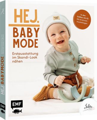 "Hej. Babymode – Erstausstattung im Skandi-Look nähen". Einfach selbst genäht: die perfekte Erstausstattung von Basicpants bis Krabbeldecke, von Musselinbody bis Wickeltasche. Die süße Babymode aus Webstoffen – jetzt auch für die Allerkleinsten in den Größen 44–92. Skandinavische Kleidung besticht mit klaren Linien, natürlichen Farben und gemütlichen Stoffen wie Walk, Baumwollstoffe, Musselin. Buch mit 130 Seiten. Größe: 20,5 x 24 cm.