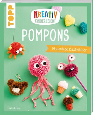 "Kreativ Kinderleicht – Pompons". Mit etwas Wolle und Geduld lassen sich Pompons in verschiedenen Größen, Formen und Mustern herstellen. Mit wenigen zusätzlichen Materialien entstehen aus den selbst gemachten Pompons lustige Figuren, tolle Deko und schöne Accessoires. Dieses Buch liefert einfache, kindgerechte Anleitungen mit zahlreichen Schrittfotos und Vorlagen sowie Tipps und Tricks für ein perfektes Gelingen. Buch mit 48 Seiten. Größe: 21 x 17 cm.
