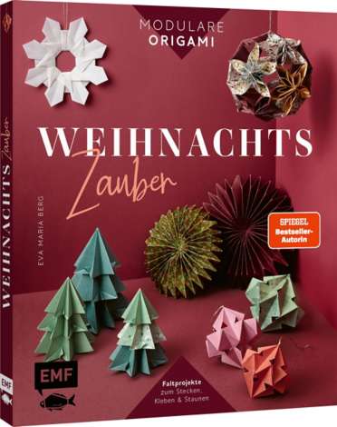 "Weihnachtszauber – Faltprojekte zum Stecken & Staunen aus Papier". Zauberhafte Weihnachtsdekoration aus Papier falten. Mit der Technik der modularen Origami entstehen aus mehreren gefalteten Teilen beeindruckende 3D-Modelle. Ob filigrane Schneeflocken, elegante Sterne oder dekorative Tannenbäumchen – diese Faltprojekte lassen sich einfach stecken oder aneinanderfügen und bringen eine besondere Festlichkeit ins Zuhause.