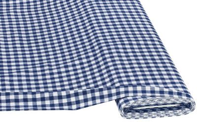 Buntgewebtes Vichykaro in fester Qualität, Farbe: blau/weiß, Karogröße: 1 x 1 cm, Breite: 150 cm, Gewicht: ca. 145 g/m². Einlaufwert: ca. 8 % in der Länge. Material: 100 % Baumwolle.