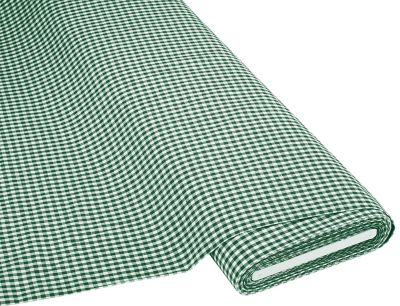Buntgewebtes Vichykaro in fester Qualität, Farbe: dunkelgrün/weiß, Karogröße: 5 x 5 mm, Breite: 150 cm, Gewicht: ca. 145 g/m². Einlaufwert: ca. 8 % in der Länge. Material: 100 % Baumwolle.