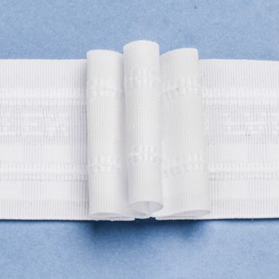 buttinette 3er-Faltenband, Stoffverbrauch: 2,5:1, Faltenabstand: 8 cm, mit zwei Zugfäden und einer Schlaufenreihe für Gardinenhaken. Farbe: weiß, Breite: 50 mm, Länge: 10 m. Material: 100 % Polyester.