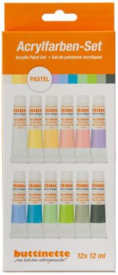 buttinette Acrylfarben-Set "Pastell", Inhalt: 12 aufeinander abgestimmte Farben à 12 ml.