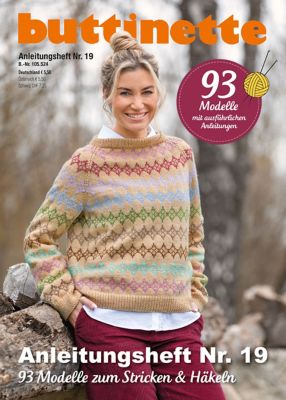 buttinette Anleitungsheft Nr. 19. Ob kuschelige Pullover, süße Kindermaschen oder stylishe Homedeko – mithilfe der Anleitungen in diesem Heft können Sie alle Strick- und Häkelmodelle aus dem aktuellen Kreativkatalog 2024/2025 ganz einfach nacharbeiten. 108 Seiten mit 93 Modellen. Größe: 20 x 28 cm.