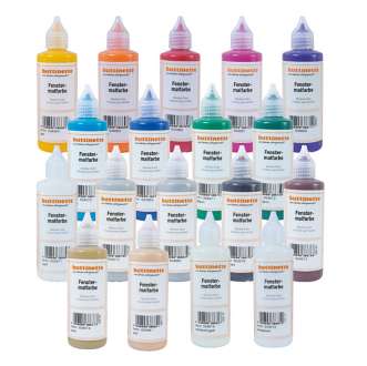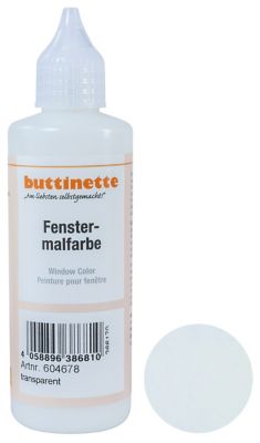 buttinette Fensterfarbe, in verschiedenen Farbtönen, für alle glatten Flächen, wie z. B. Glas, Spiegel, Spezialfolie, Fliesen usw. geeignet. Inhalt: 80 ml.