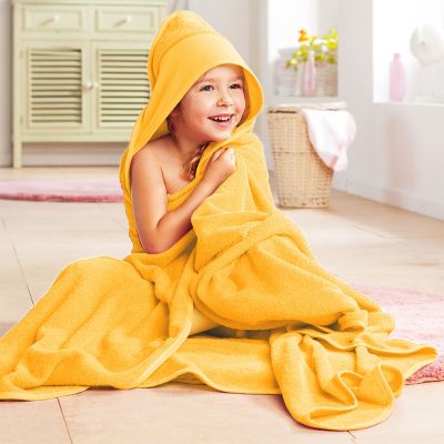 buttinette Kapuzenbadetuch für Kinder, Farbe Gelb, zum individuellen Besticken für Ihr eigenes Kind oder als Geschenk. Größe Aidaborte: 8 x 42 cm, die in die Kapuze eingearbeitet ist. Größe: 140 x 140 cm. Material: 100 % Baumwolle (ca. 7 Stiche/cm). Gewicht: ca. 360 g/m2.