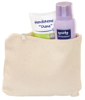 buttinette Kosmetiktäschchen mit Reißverschluss, Farbe: natur, Größe: 18 x 14 cm, Gewicht: ca. 305 g/m². Material: 100 % Baumwolle in Canvasbindung.