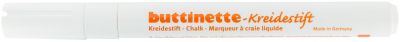 buttinette Kreidestift, für glatte Oberflächen geeignet. Der Kreidemarker ist feucht abwischbar und auf Wasserbasis. Strichstärke 1–2 mm, Farbe: weiß.