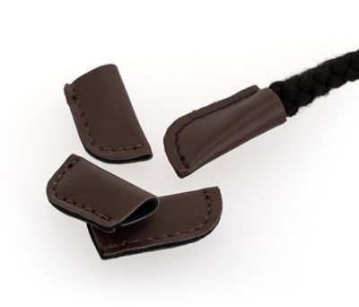 buttinette Kunstleder-Kordelendstücke, Farbe: braun, Größe: Länge: 3,3 cm, Breite 3,1 cm, passend für Kordeln mit einer max. Stärke von 8 mm, Inhalt: 4 Stück. Material: 100 % Polyurethan.