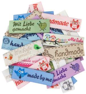 Das Muss für alle DIY-Fans zum Basteln, Dekorieren, Verschönern und Aufpimpen: unsere Weblabels. Die Web-Etiketten verleihen Ihren selbstgemachten Kreationen im Handumdrehen einen professionellen Touch: einfach aufkleben oder aufnähen – sie sehen auf Kleidung und Accessoires genauso schön aus wie auf Homedeko. Außer zum Aufpimpen sind die Web-Labels auch ideal um kleine Löchlein, Flecken oder unschöne Stellen (z.B. Nahtübergänge) verschwinden zu lassen.