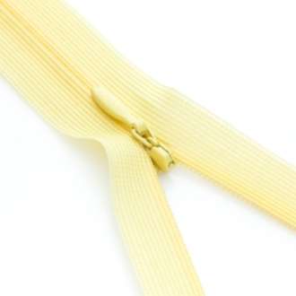 buttinette nahtverdeckter Reißverschluss, nicht teilbar, Farbe: gelb, Breite: 4,2 mm, Band 25 mm. Material: Band aus 100 % Polyester, Spirale aus Kunststoff, Schieber aus Metall.