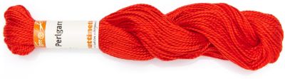 buttinette Perlgarn, Farbe: rot, 25 g-Stränge in Stärke 5 für die Plattstiche und in Stärke 8 für alle Stege und Füllungen. Material: 100 % Baumwolle.