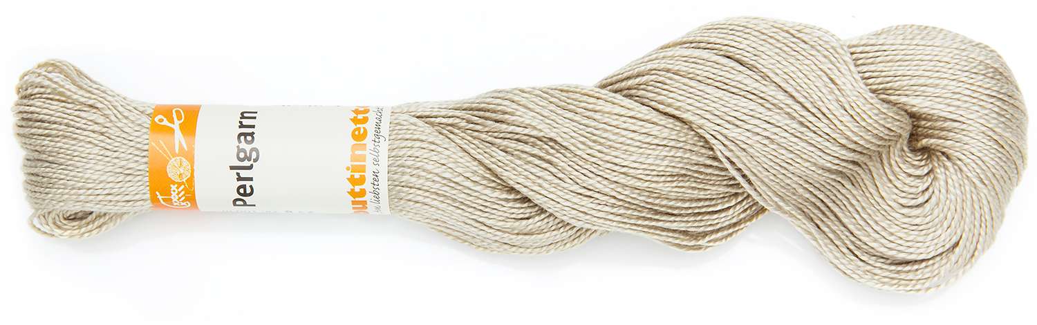 buttinette Perlgarn, Farbe: sand, 25g-Stränge in Stärke 5 für die Plattstiche und in Stärke 8 für alle Stege und Füllungen. Material: 100 % Baumwolle.