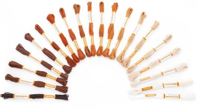 buttinette Qualitäts-Sticktwist "Braun", 6-fädig glatt verzwirnt und mercerisiert, Inhalt: 20 Strängchen à 8 m = 160 Meter. Material: 100 % Baumwolle.