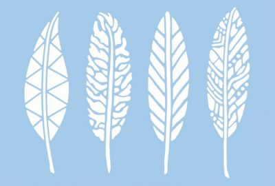 buttinette Schablone "Federn" aus Kunststoff, Farbe: transparent, Größe: 29,5 x 20 cm, Motivgröße: 17,5–18,5 cm, 4 Motive.
