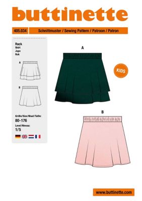Schnitt "Stufenrock" für Kinder, exklusiv von buttinette, Anleitung für 2 Modelle, Größe: 80–176, Schwierigkeitsstufe: 1/5, Stoffempfehlung: leichte Stoffe.