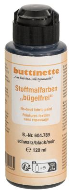 buttinette Stoffmalfarbe bügelfrei für helle und dunkle Baumwoll- und Leinentextilien mit max. 25 % Kunstfaseranteil, ohne Bügelfixierung waschbeständig bis 30 °C, Inhalt: 120 ml.
