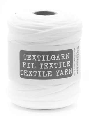 buttinette Textilgarn, Farbe: weiß. Im Handumdrehen entstehen aus diesem Textilgarn Wohn- und Modeaccessoires wie z. B. dekorative Sitzkissen, Kissenbezüge, modische Taschen, stylische Armbänder uvm. Die Modelle sind mit großen Nadeln schnell gestrickt oder gehäkelt. Dieses qualitativ hochwertige Textilgarn wird aus Restmaterial der Mode- und Textilindustrie hergestellt. Die Farben entsprechen der aktuellen Mode und unterliegen einer ständigen Veränderung (je nach Anfall). Garndicke: 0,8–0,9 cm, Lauflänge: ca. 70–90 Meter.